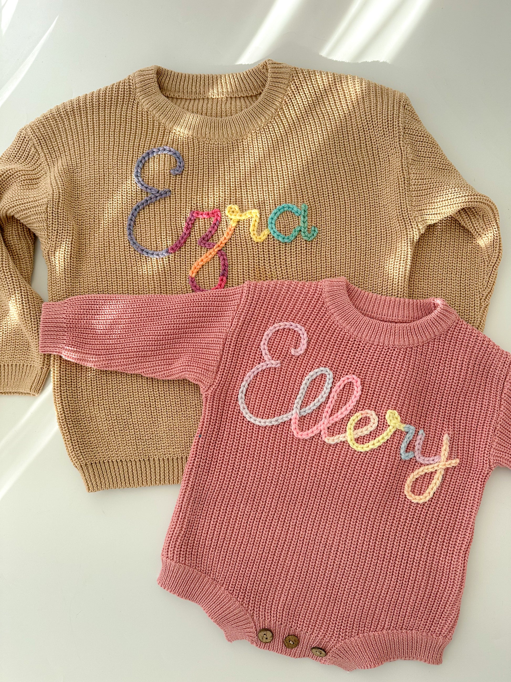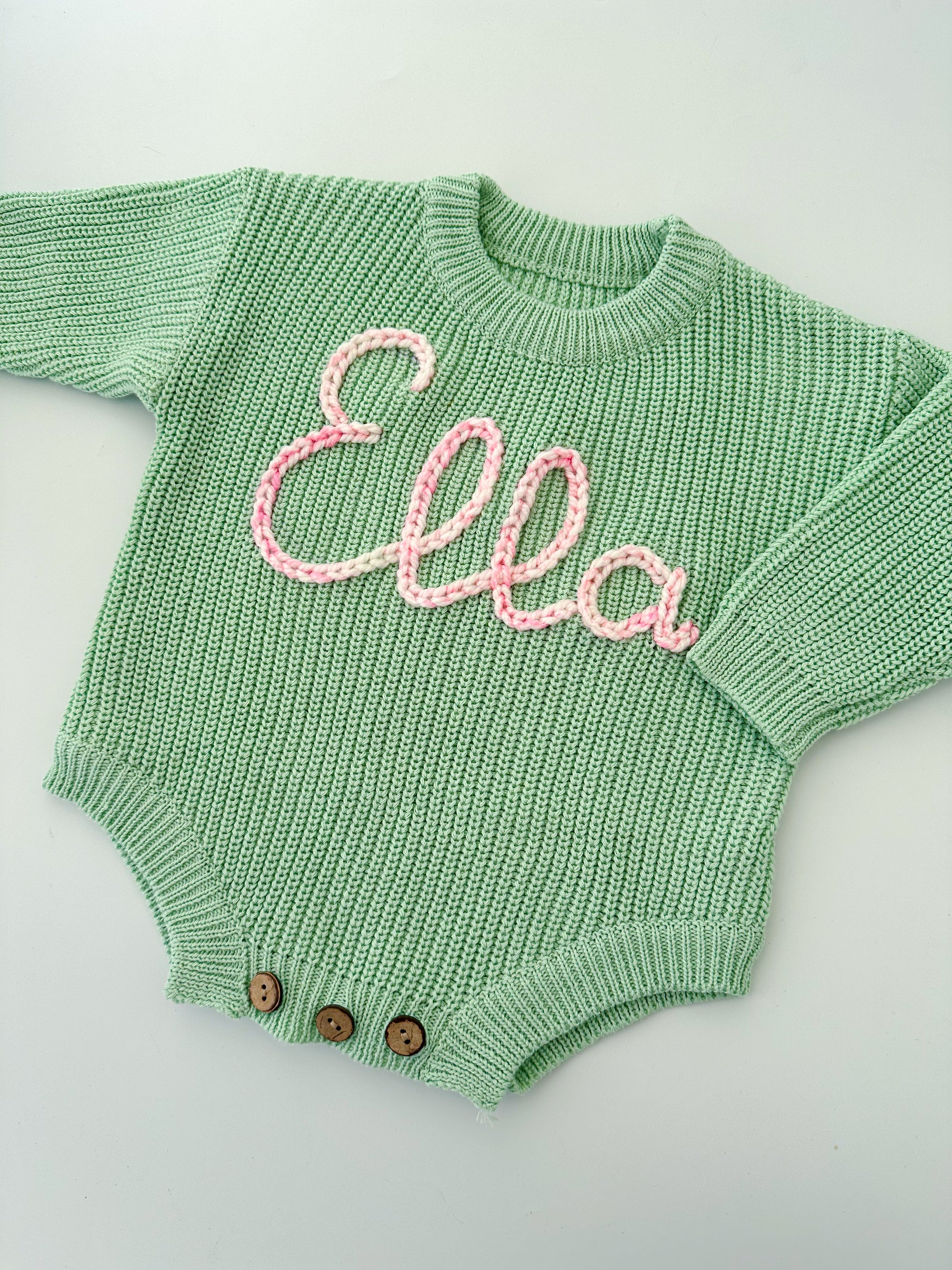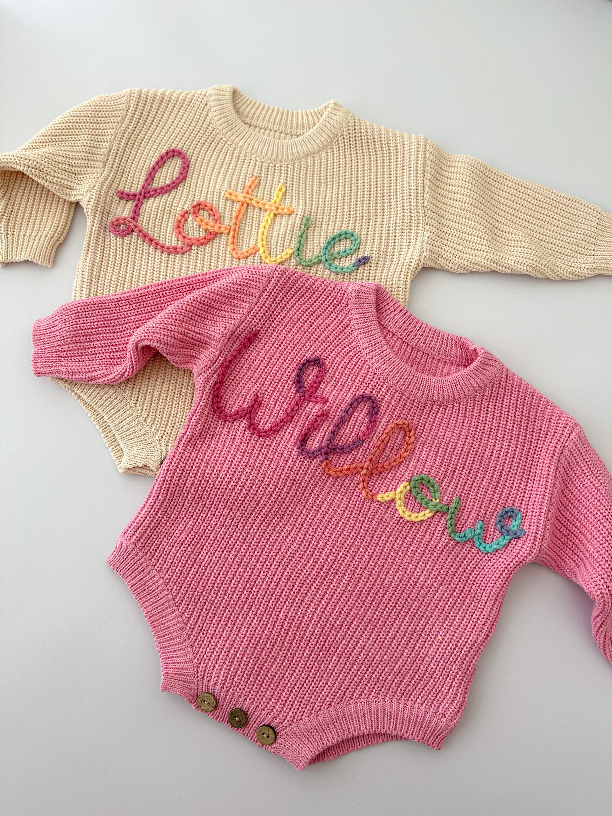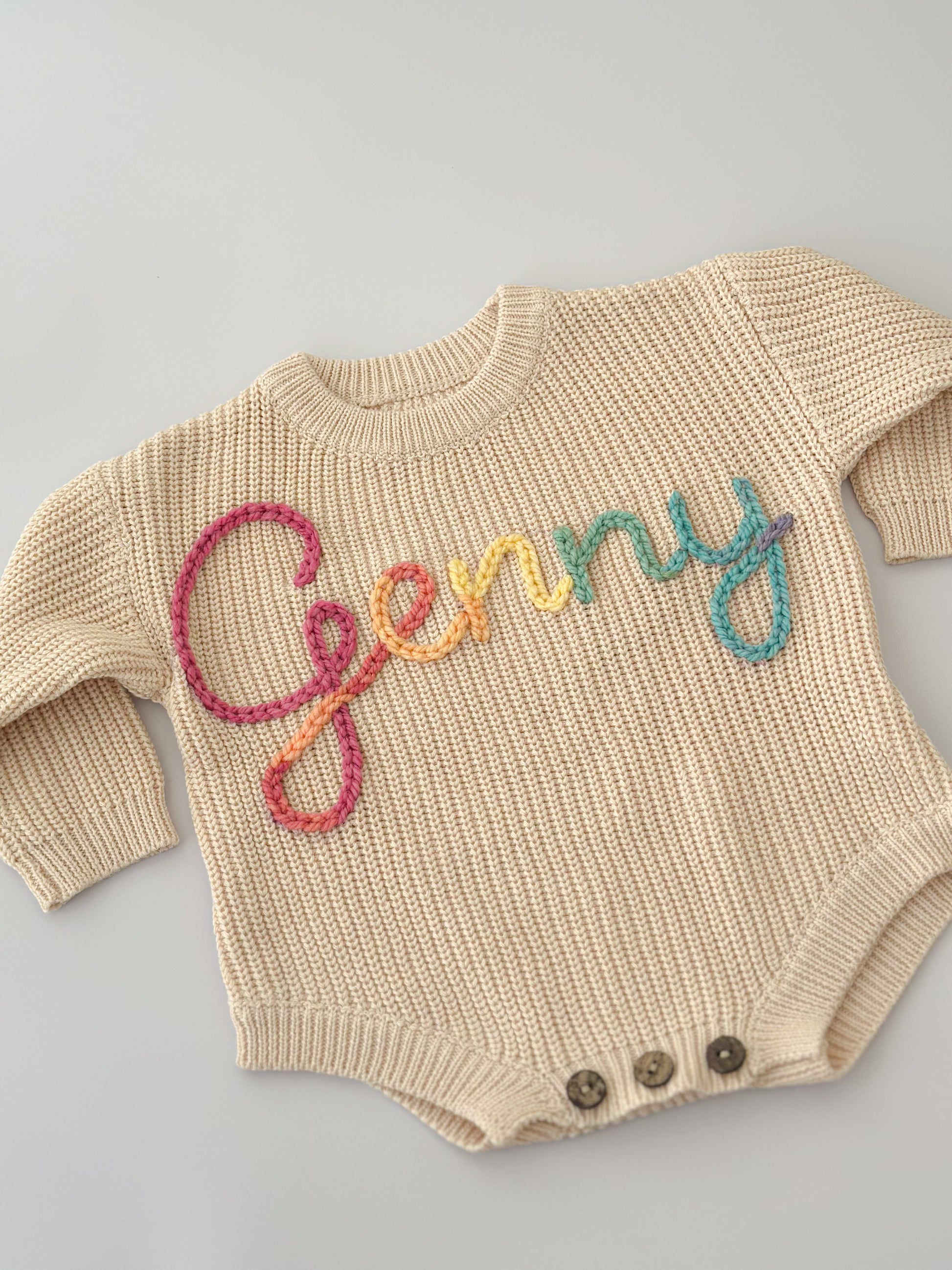 You've just found the laid-back answer to our oversized sweaters- Name rompers. This playful piece offers an oversized fit for comfort, while still keeping your little one snug and cozy.Get ready to romp in style!