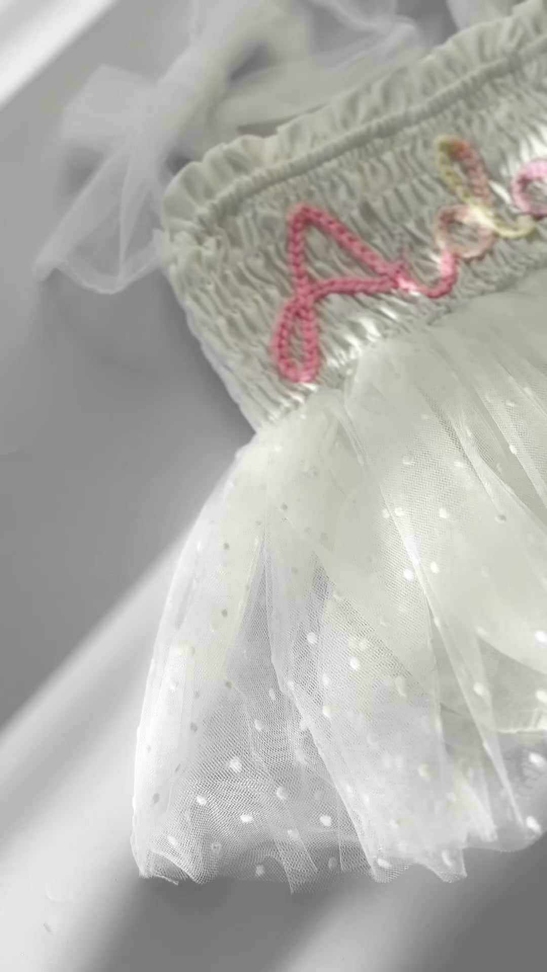 Please choose option 'name& all overs design' if you want embroidery on the tulle part.